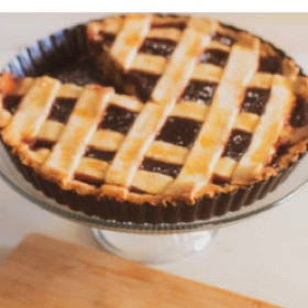 Bake your Crostata in the fridge for 50 -60 minutes at 340 degrees Fahrenheit. Remove from oven when the crostata has a soft golden color and slightly brown at the edges.