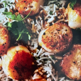 Infused with the sweetness of coconut, basmati rice nestles sweet-and-sour glazed scallops. Garnish with orange segments for an extra hit of citrusy flavour and a pop of colour.