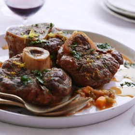 Pour all the juices and sauce from the pot over the shanks. Garnish with chopped parsley and lemon zest.